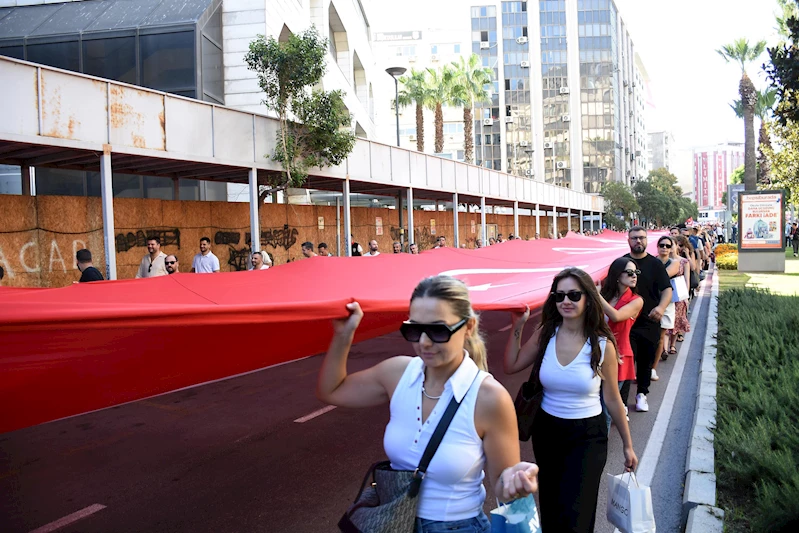 İzmir'de 350 metrelik Türk bayrağı ile 'Zafer Yürüyüşü' / Ek fotoğraflar
