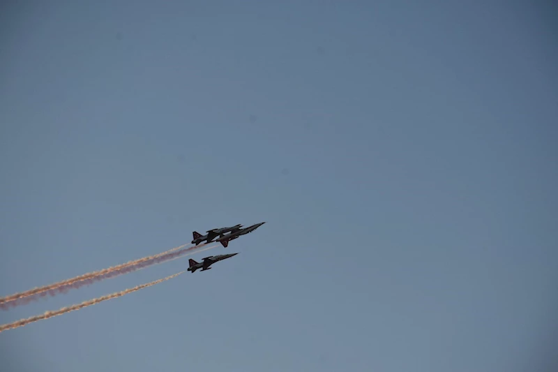 Türkiye Cumhuriyeti'nin kuruluşunun 101’inci yıl dönümü ve Cumhuriyet Bayramı kutlamaları Cumhuriyetin 101'inci yılı kutlamaları, Gündoğdu Meydanı'ndaki programla sürdü. Türk Hava Kuvvetleri'ne bağlı akrobasi timi Türk Yıldızları, alçak uçuş ve gerçekleştirdikleri hassas manevralarla heyecan yarattı. 7'den 70'e İzmirliler gösteri boyunca nefeslerini tuttu. Türk Yıldızları'nın yetenekli pilotları İzmir Körfezi'nin üzerine gökyüzüne kalp de çizdi. (DHA)