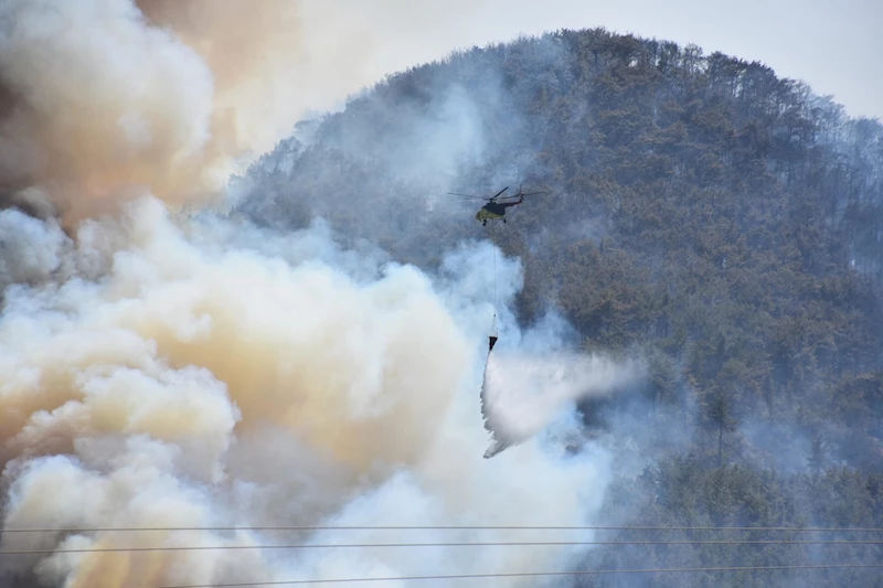 Öte yandan, ilk etapta kalkış yapamayan helikopterlerden 2'sinin rüzgarın etkisinin hafiflemesiyle havalanıp, alevlere müdahale etmeye başladığı bildirildi. (DHA)