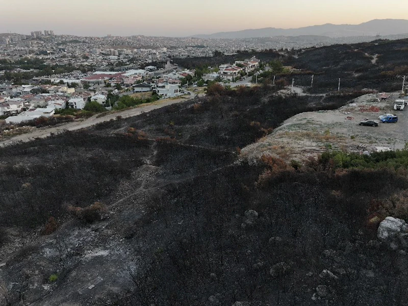 Halil İbrahim KARABIYIK/İZMİR, (DHA)- İZMİR’in Buca ilçesinde dün bir minibüste çıkıp ormana sıçrayan yangına gün ilk ışıklarıyla havadan müdahale yeniden başladı. Yangında, yerleşim yerlerinin çevresinde yanan alanlar, dron ile görüntülendi.