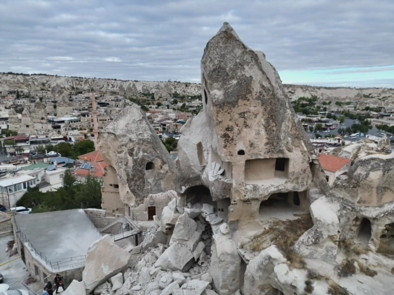 Ahmet KORKMAZER/NEVŞEHİR, (DHA)- TÜRKİYE’nin önemli turizm merkezlerinden Kapadokya bölgesinde peribacasının büyük bir bölümü gece saatlerinde yıkıldı.