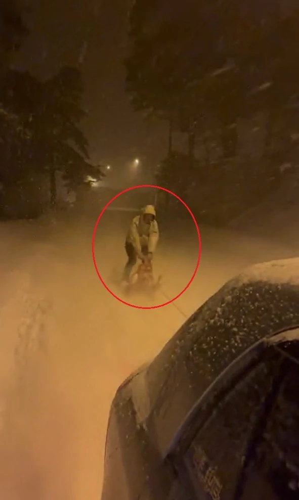 İnegöl ilçesinde dün akşam saatlerinde başlayan kar yağışı, gece boyunca etkisini sürdürdü. Kırsal Çayyaka Mahallesi'ne bağlı 1300 rakımlı Boğazova bölgesinde yoğun kar yağışı nedeniyle bazı sürücüler yolda kaldı. Yolcuların kaputuna ve bagajına oturması ile otomobil yokuş yukarı çıkabilirken, o anlar cep telefonu kamerasına yansıdı. Bazı vatandaşlar, otomobilin arkasına halatla bağladıkları kızaklarla kayarken, bir vatandaş da kızağın üstünde ayağa kalkarak kar üstünde sörf yaptı. (DHA)