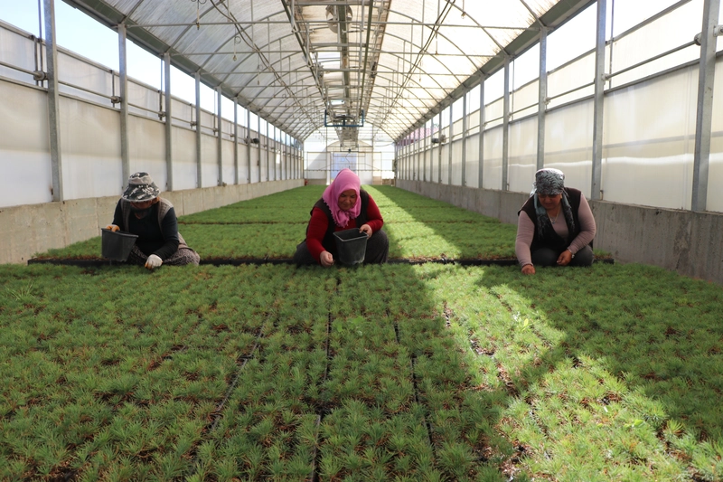 Kocasinan ilçesi Mithatpaşa Mahallesi’nde 60 hektar alanda kurulan ve yılda 3 milyon fidan kapasiteli Kayseri Orman Fidanlık Şefliği’nde fidanlar kadın çalışanlar tarafından özenle yetiştiriliyor. Tesiste çalışan kadınlar, fidanların dikiminden çapalanmasına, yabani otların temizlenmesinden sulamasına kadar bakımlarını titizlikle yapıyor. Kadın çalışanlar tarafından yeşertilen 1 milyon 200 bin fidan, büyük orman yangınlarının olduğu bölgeler başta olmak üzere Kayseri ve civarında, erozyonla mücadele ve ormanlaştırma projelerinin olduğu bölgelere gönderilip toprakla buluşturuluyor.