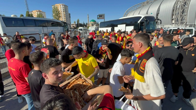 Süper Lig’in 5’inci haftasında Kayserispor bugün sahasında Göztepe’yi konuk edecek. İzmir ekibinde deplasman için Kayseri’ye gelen taraftarlar, renktaşları tarafından dostane şekilde karşılandı. Kayserispor taraftarı tarafından, Göztepe taraftarına yemek ve tatlı ikram edildi. İzmir Çamdibi’nden geldiğini söyleyen İsmail Kenanbaşoğlu, “Keyifle geldik. Güzel karşılandık. İnşallah güzel bir maç olur. Kayserispor taraftarına teşekkür ediyoruz. Dostluk kazansın” dedi.