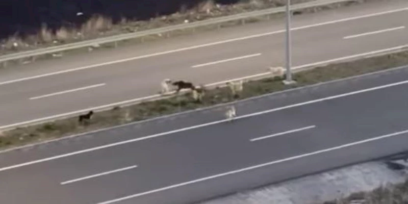 İnönü Mahallesi'ndeki TOKİ konutlarının bahçesine gelen bozayı, bir süre çöpte yiyecek aradı. Bu sırada başıboş köpekler ile bozayı karşı karşıya geldi. Bir süre köpeklerle dalaşan ayı daha sonra bir halı sahaya girdi. O anlar, Hür Özgür Yılmaz tarafından cep telefonu ile kaydedildi. (DHA)