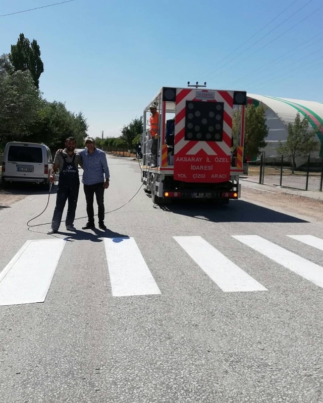 Aksaray İl Özel İdare Genel Sekreteri Ramazan ALTUNDAĞ; trafikte bulunan sürücü, yaya ve yolcuların ortak dili olan trafik işaretlemelerini, doğru ve yerinde kullanmanın trafik güvenliği açısından büyük önem taşıdığını, Aksaray İl Özel İdaresi’nin Aksaray ili genelinde güvenli yollar için çalışmalarına ara vermeden devam etmektedir. Yol ağımızda bulunan yollarda bu yıl içerisinde 400 kilometrelik kısımda yol çizgi çalışması, 5000 adet uyarıcı trafik levhası, 5000 adet cam takviyeli plastik (CTP) ve 1000 metre oto korkuluk çalışması yaptık. Ekiplerimiz Aksaray ili genelinde trafikte yaya, sürücü ve yolcuların can ve mal güvenliğini sağlamak için trafik işaretleme çalışmalarına hızla devam etmektedir” dedi.