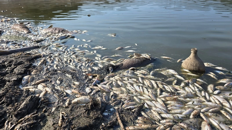 Göletteki balık ölümlerine dikkat çekmek için bölgede toplanan vatandaşlar ise, sağ kalan balıkların bölgeden uzaklaştırılması için yetkililere çağrıda bulundu. (DHA)