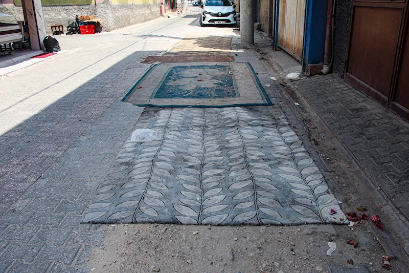 Yusuf YILDIZ/ADANA, (DHA)- ADANA’nın Gülpınar Mahallesi’nde oturanlar, uzun süredir onarılmayan yolların bozuk olması nedeniyle kalkan tozdan korunmak için sokaklara halı serdi.