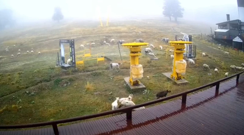 Esra TÜRKER/BURSA, (DHA)- TÜRKİYE'nin önemli kış turizm merkezlerinden Uludağ’da mevsimin ilk karı beklenirken, sezon boyunca adım atmaya yer kalmayan kayak pistlerinde koyunlar otluyor. 1’inci Oteller Bölgesi’ndeki kayak pistinde, başlarındaki çoban ve Kangal köpekleri ile otlayan koyun sürüsü, pistin canlı yayın kamerasına yansıdı.