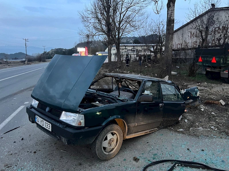Hızır İlyas YILDIRIM/MUDURNU (Bolu), (DHA)- BOLU’nun Mudurnu ilçesinde otomobil, karşı yönden gelen otomobille çarpıştı. Çarpışmanın etkisiyle ikiye bölünen otomobilin sürücüsü kazayı mucize eseri yara almadan atlatırken, fabrikanın duvarına çarpan diğer otomobilin sürücüsü yaralandı.