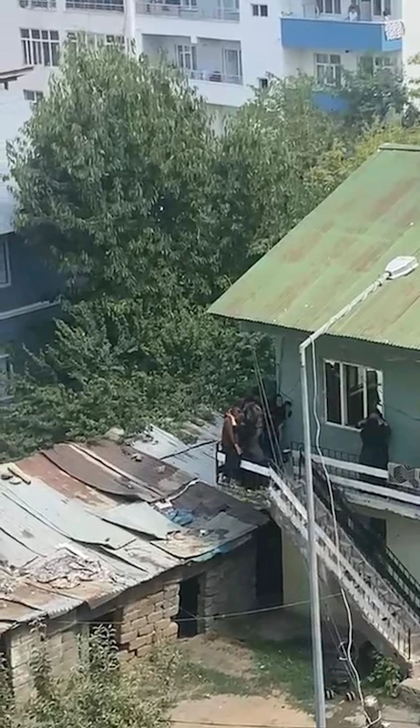 Olay, öğle saatlerinde Kültür Mahallesi'nde meydana geldi. Suriyeli iki ailenin fertleri arasında bilinmeyen nedenle çıkan tartışma, kısa sürede kavgaya dönüştü. İki katlı binada yaşayan aileler arasındaki kavgada bir kadının darbedildiği görüldü. İhbar üzerine adrese polis ekipleri sevk edildi. O anlar, başka bir binada yaşayanlar tarafından cep telefonu kamerasıyla kaydedildi. Görüntülerde, kavga sırasında bir kadının yumruk ve tekmelerle merdivenlerden aşağı indirildiği, bazılarının araya girerek kavgayı ayırmaya çalıştıkları anlar yer aldı. (DHA)