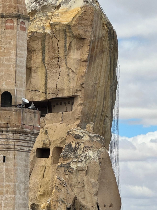 Öte yandan, dün gece saatlerinde de Göreme beldesi Gaferli Mahallesi'ndeki bir peribacasının büyük kısmında yıkılma olmuştu. (DHA)