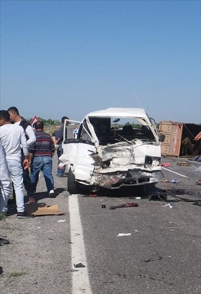 Kazada, minibüste bulunan ve Suriyeli olduğu öğrenilen 5 kişi ile sürücü A.B. ile yanındaki kişi yaralandı.