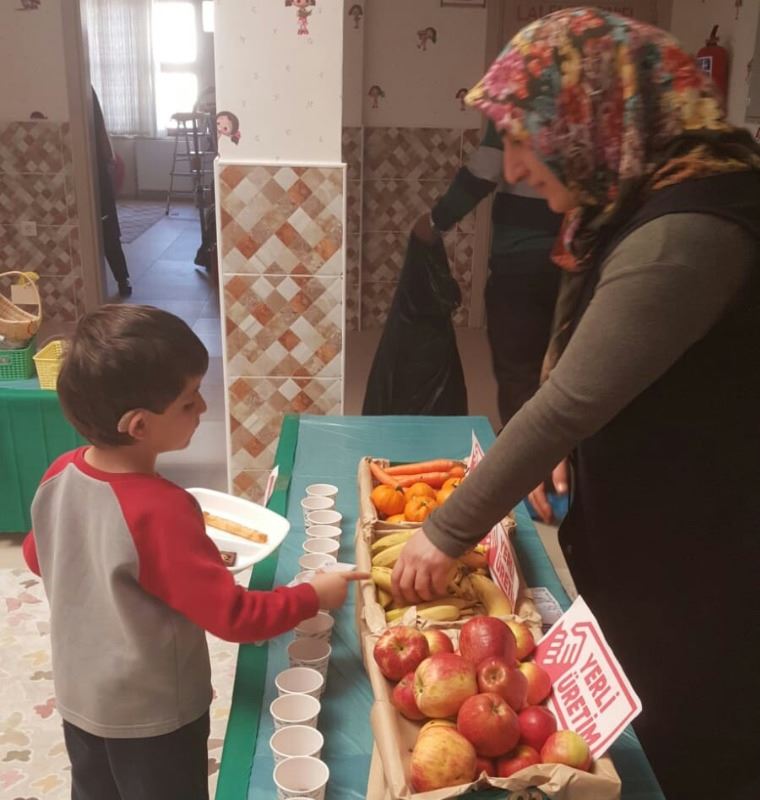 Veliler tarafından getirilen yerli ürünler minik öğrencilere paylaştırılarak yerli üretimin önemi hakkında anlayacakları nitelikte anlatımlarda bulunuluyor. Daha çok elma portakal mandalina gibi mevsim meyvelerinden oluşan ürünlerin yanı sıra yaş pasta ve kek gibi ürünleri de unutmayan veliler, öğrencilere Yerli malı tüketmenin ve kullanmanın önemini anlatıyorlar. Yerli Malı Hafta etkinliklerinin yapıldığı okullardan biride Nalbantoğlu Ahmet Remzi Çivi Ana okulu oldu.