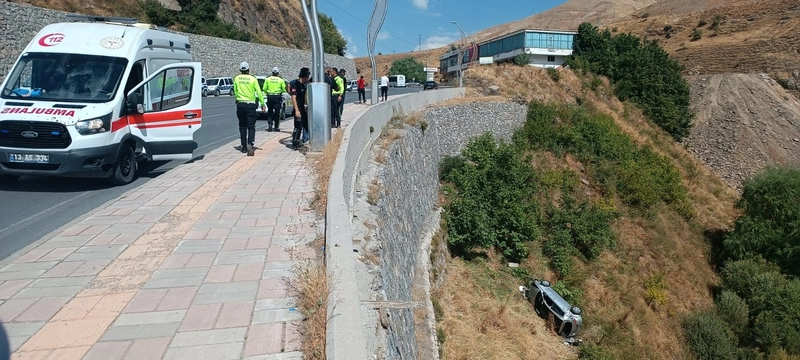 Özcan ÇİRİŞ/BİTLİS, (DHA)- BİTLİS'te yoldan çıkıp 10 metre yükseklikten düşen otomobildeki 1'i ağır, 2 kişi yaralandı.