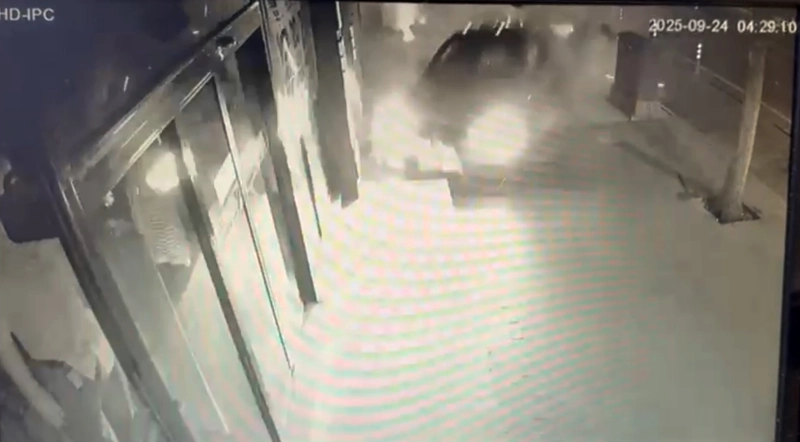 Diğer yandan, kaza anı güvenlik kamerasına yansıdı. Görüntülerde, yolda ilerleyen otomobilin kontrolden çıkarak, kaldırımı aştığı ardından da hızla mağazaya çarptığı görüldü. Bu sırada kaldırımda yürüyen bir kadının ise saniyelerle kazadan kurtulduğu anlar kamerada yer aldı.