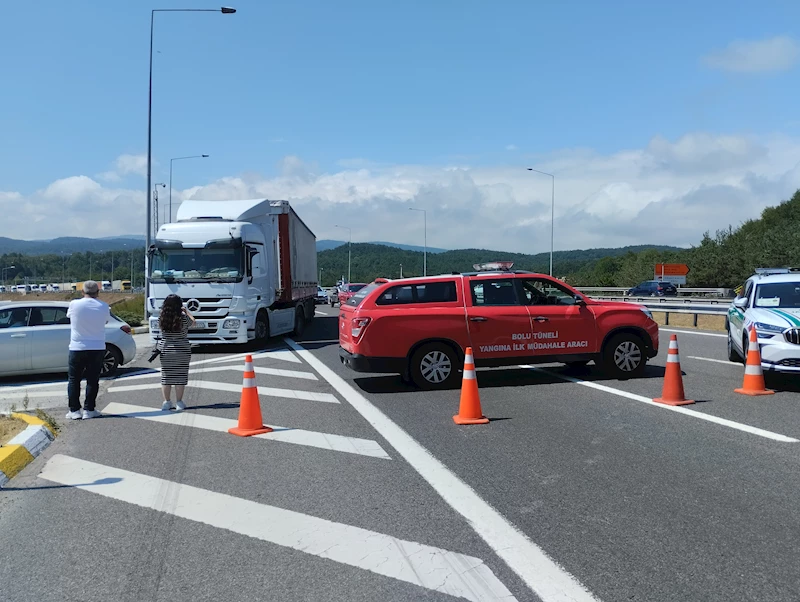 Yolda uzun araç kuyrukları oluştu. Araçlar Bolu Dağı Tüneli girişinden geri döndürülüp, Abant gişelerinden D-100 kara yoluna yönlendirildi. (DHA)