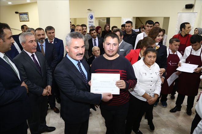 Yapılan konuşmaların ardından Gönül Dostları Derneği tarafından hazırlanarak İŞ Kurumu Müdürlüğünce özel çocuklara yönelik düzenlenen ?Engelsiz Servis ve Takı Tasarımı´ kurslarına katılan özel çocukların sertifikaları Vali Ali Mantı, Belediye Başkanı Haluk Şahin Yazgı, Cumhuriyet Başsavcı Vekili Aylin Kızıldere Yalçınkaya, Aksaray Üniversitesi Rektörü Prof.Dr. Yusuf Şahin, Emniyet Müdürü Ali Karabağ, Kamu Kurumları Müdürleri, Siyasi Parti Temsilcileri ile Sivil Toplum Kuruluşları Temsilcileri tarafından verildi.