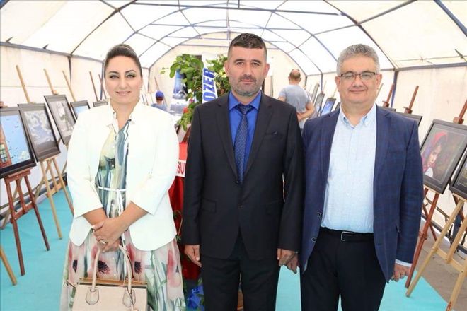 Aksaray Valisi Aykut Pekmez eşi Yeşim Pekmez Hanımefendi ile birlikte sergiyi gezerek polis memuru fotoğraf sanatçısı Ölçek ´ten bilgi aldı.