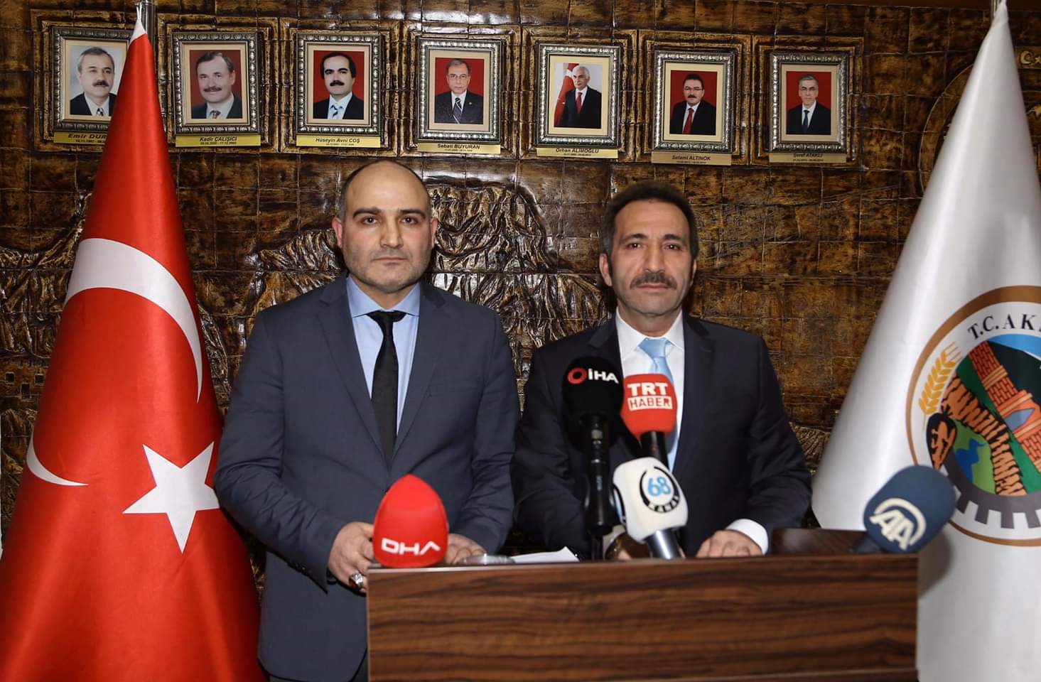 Aksaray Valisi Ali Mantı ve İl Sağlık Müdürü Uzman Doktor Kerim Yeşildağ valilik binasında koronavirüs şüphesi olayı ile ilgili basın açıklaması yaptı.