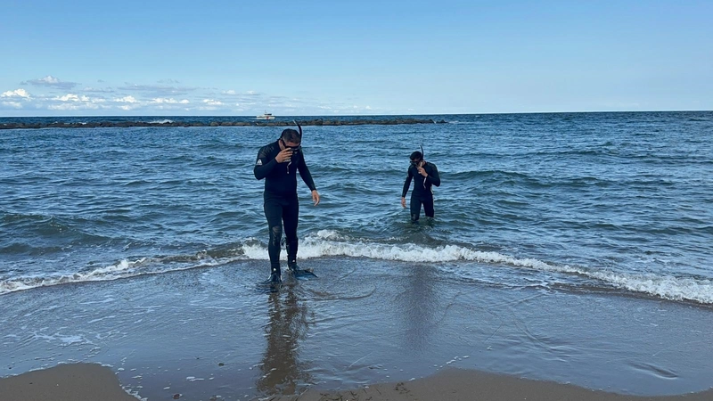 Levent KIZILASLAN/KARASU (Sakarya), (DHA)- SAKARYA’nın Karasu ilçesinde sahilde biri kız diğeri erkek çocuğuna ait, 2 çift çocuk ayakkabısı bulunması üzerine sahil güvenlik ekibine bağlı dalgıçlar denizde arama çalışması başlattı.