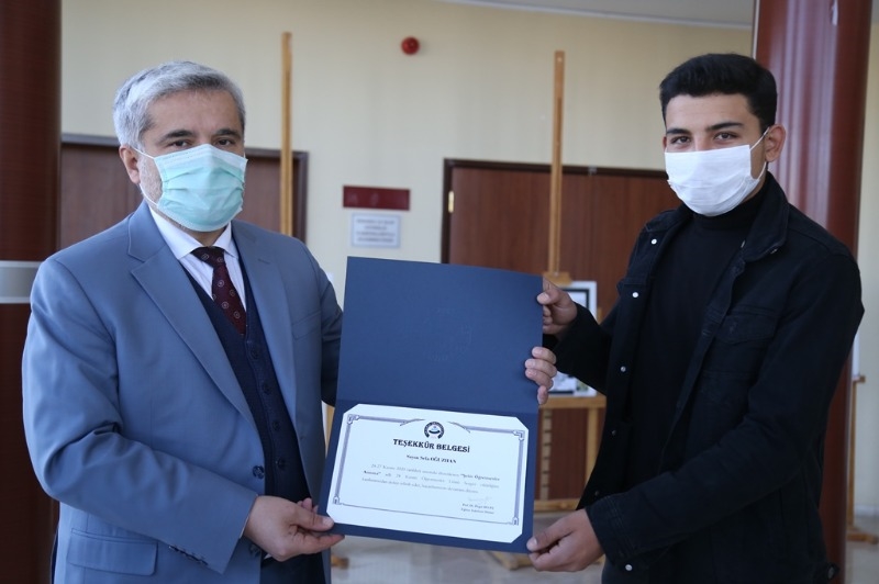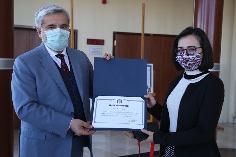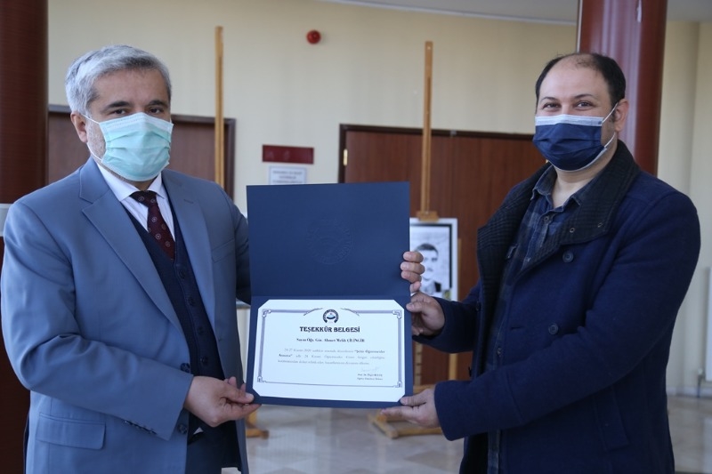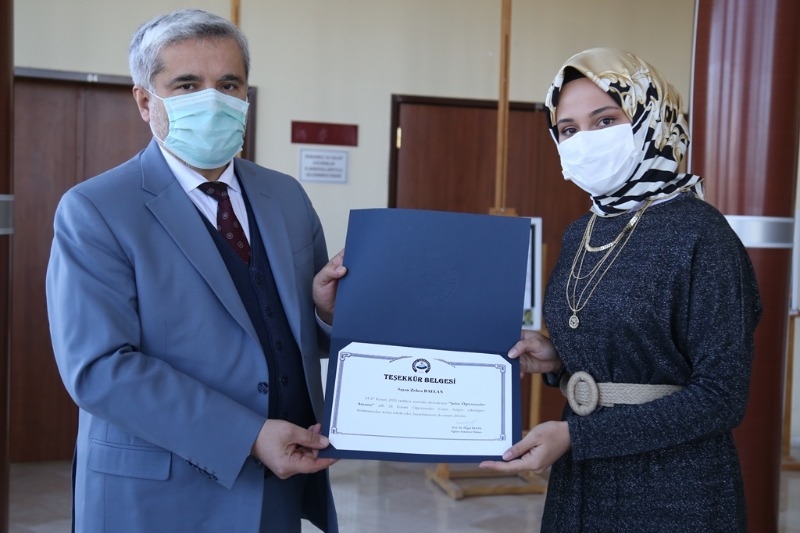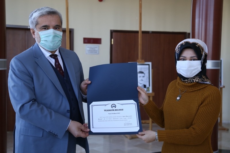 Katılımcıların sergi gezmesinin ardından, etkinliğin düzenlenmesine katkıda bulunan isimlere Rektör Şahin tarafından “Teşekkür Belgesi” takdim edildi.