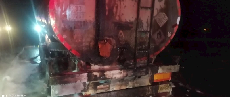 Olay, akşam saatlerinde Cizre- Nusaybin kara yolu Yolaçan köyü mevkisinde medyana geldi. Ahmet T. idaresindeki 73 SB 167 plakalı akaryakıt yüklü tanker, henüz bilinmeyen bir nedenle dorse kısmından alev alarak yanmaya başladı. Yangını fark eden Ahmet T., aracı yol kenarına çekerek durumu 112 Acil Çağrı Merkezi’ne bildirdi. Bölgeye itfaiye ve sağlık ekipleri sevk edildi. Yangın, ekiplerin müdahalesiyle kontrol altına alınarak söndürüldü. Yangın anı cep telefonu kamerasıyla kaydedilirken, tankerin kullanılamaz hale geldi. Olayla ilgili inceleme başlatıldı. (DHA)