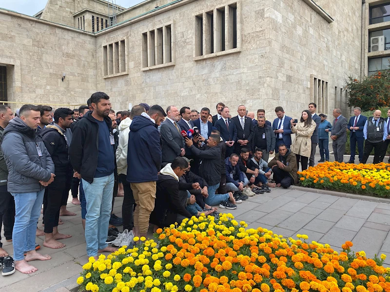 Aliekber METE/ ANKARA, (DHA)- MANİSA'nın Soma ilçesinden Ankara'ya yürüyüş düzenleyen özel maden şirketinde çalışan işçiler, milletvekilleri ile birlikte TBMM'de basın toplantısı düzenledi.