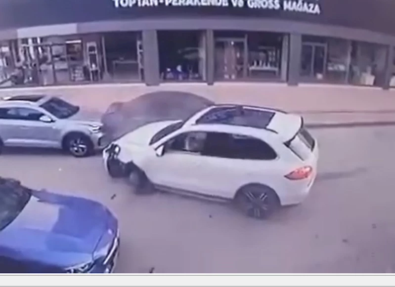 Kaza anı ise güvenlik bir iş yerinin güvenlik kamerasına yansıdı. (DHA)