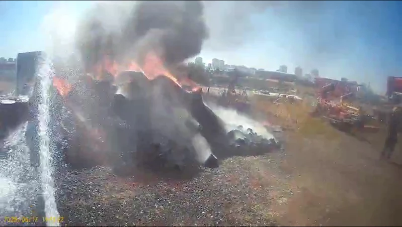 Gıyasettin TETİK-Seyfettin EKEN/DİYARBAKIR, (DHA)- DİYARBAKIR’ın Yenişehir ilçesinde depo olarak kullanılan bahçede çıkan yangında 30 ton kauçuk, 14 varil zemin yapıştırıcısı yanarken, 1 konteyner ve 1 kulübe kullanılamaz hale geldi.