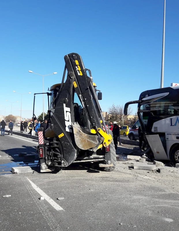 Kaza, saat 13.30 sıralarında Ürgüp ilçesi Ortahisar beldesinde meydana geldi. Mehmet Güzel’in kullandığı 41 AGH 651 plakalı ve Endonezyalı turistlerin içinde olduğu otobüs ile Akın Kılıç’ın kullandığı 50 06 002 plakalı iş makinesi çarpıştı. Kazada 2 aracın sürücüsü ile Endonezyalı 5 turist yaralandı. İhbar üzerine olay yerine jandarma ve sağlık ekipleri sevk edildi. Sağlık ekiplerinin müdahalesinin ardından yaralılar, Nevşehir Devlet Hastanesi'ne kaldırıldı. Jandarma, kazayla ilgili soruşturma başlattı. (DHA)
