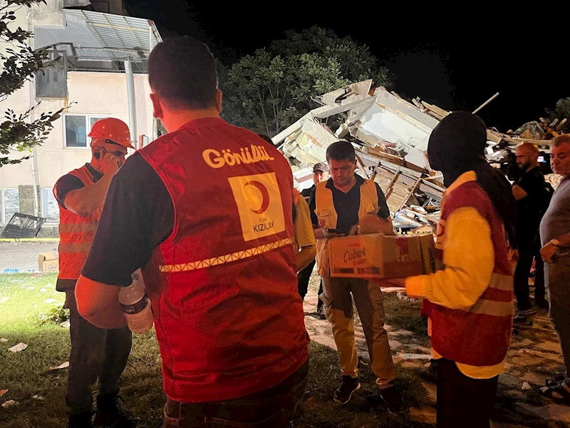 Kızılay; 30 araç, uzman ekipleri ve gönüllüleriyle hem depremden etkilenen vatandaşlara hem de gece boyunca görev yapacak arama-kurtarma ve sağlık ekiplerine sıcak yemek, içecek ve temel gıda ikramı yaptı.
