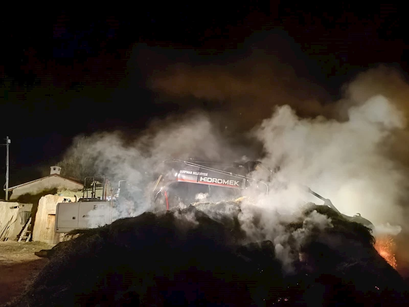 Tuncay AVCI/GÜRPINAR (Van), (DHA)- VAN'ın Gürpınar ilçesinde Resul Şen'e ait ahırın damında istiflenen ot bağları, bilinmeyen nedenle alev aldı. Yangın, itfaiye ekipleri iş makinelerinin yardımıyla söndürdü.