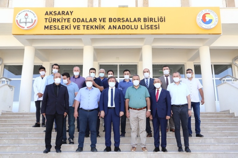 Milli Eğitim Müdürlüğünce hazırlanan protokolü Aksaray Ticaret ve Sanayi Odası Başkanı Cüneyt Göktaş, Ticaret Borsası Başkanı Hamit Özkök, Organize Sanayi Bölgesi İş Adamları Derneği Başkanı Serdar Öngün ve dernek yöneticileri OSB Müdürü Ayhan Ermiş’in de hazır bulunduğu OSB ziyaretinde imzalayan Vali Hamza Aydoğdu Türkiye Odalar ve Borsalar Birliği Mesleki Eğitim ve Teknik Anadolu Lisesinde incelemelerde bulundu. Okul hakkında bilgi alan Vali Aydoğdu okulun ihtiyaç ve eksikliklerinin kısa sürede tamamlanması talimatını vererek sanayi sektörünün nitelikli ara elaman ihtiyacının önemli bir bölümünün bu okul tarafından karşılanacağını belirtti.