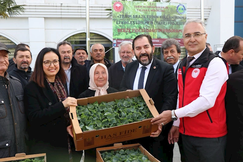 Zehra BAYKAL/ YALOVA, (DHA)- YALOVA’da ‘Tarım Arazilerinin Kullanımının Etkinleştirilmesi (TAKE) Projesi’ kapsamında 240 çiftçiye yaklaşık 300 dekar alanda üretilmesi için 115 bin adet biber, 260 bin adet salatalık olmak üzere toplam 375 bin adet sebze fidesi dağıtıldı.