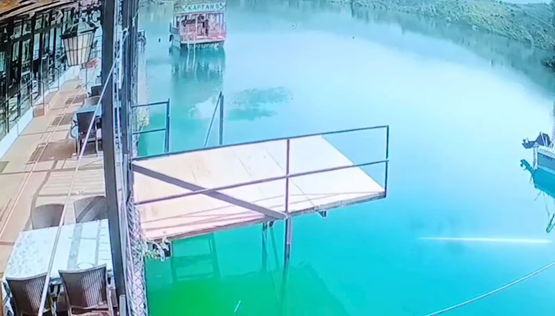Mithat ABAKAN/MANAVGAT (Antalya), (DHA)- ANTALYA'nın Manavgat ilçesinde baraj gölü üzerine kurulu restorandan suya atlayan Tolga Demir (32), boğuldu. Demir'in 'Göle girmek tehlikelidir' yazılı uyarı tabelasının bulunduğu noktanın birkaç metre ilerisinden suya balıklama atladığı anlar, kameraya yansıdı.